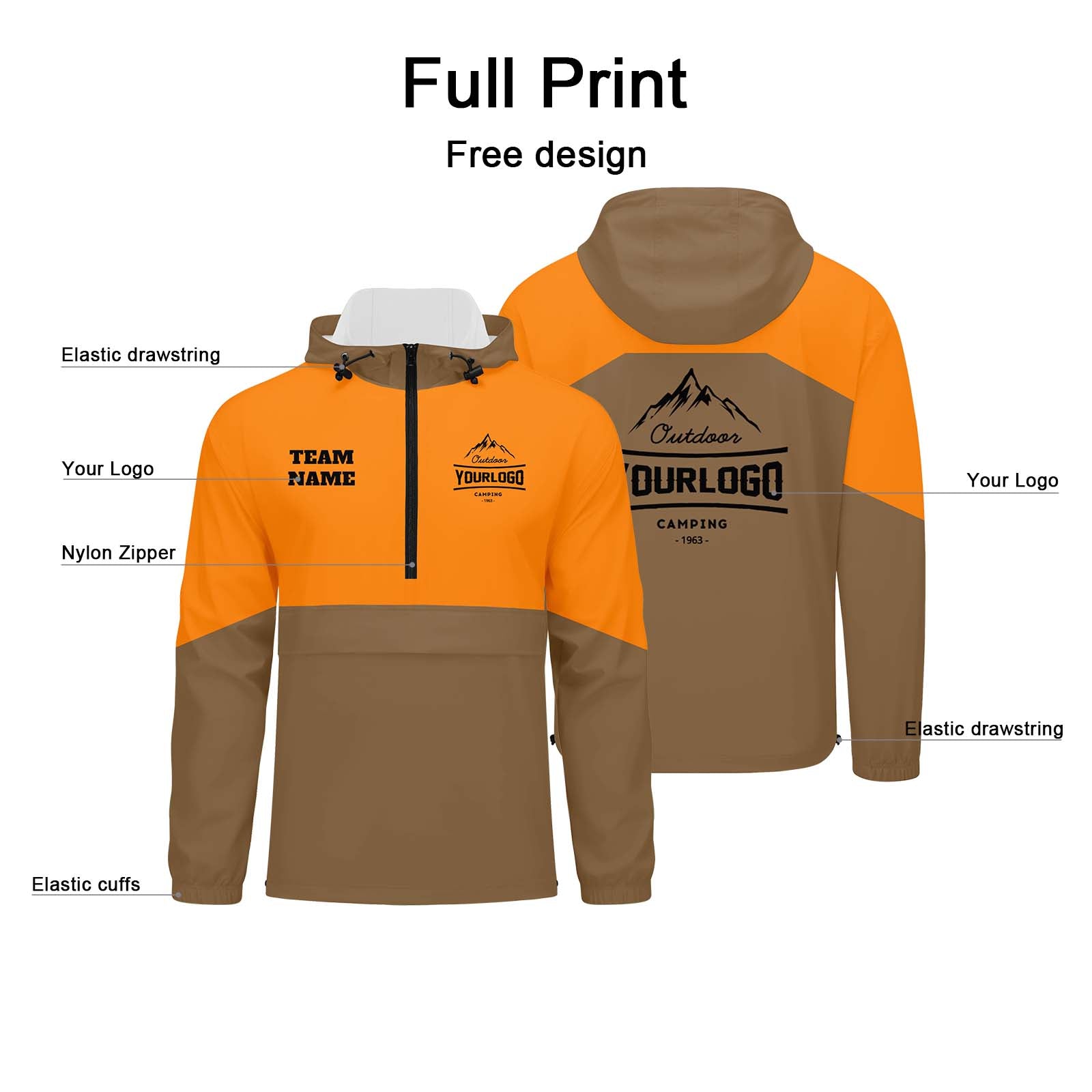 Anpassbare Braun Orange Winddichte Softshell Kapuzenjacke - Vollverschluss, Logo- & Text-Druck