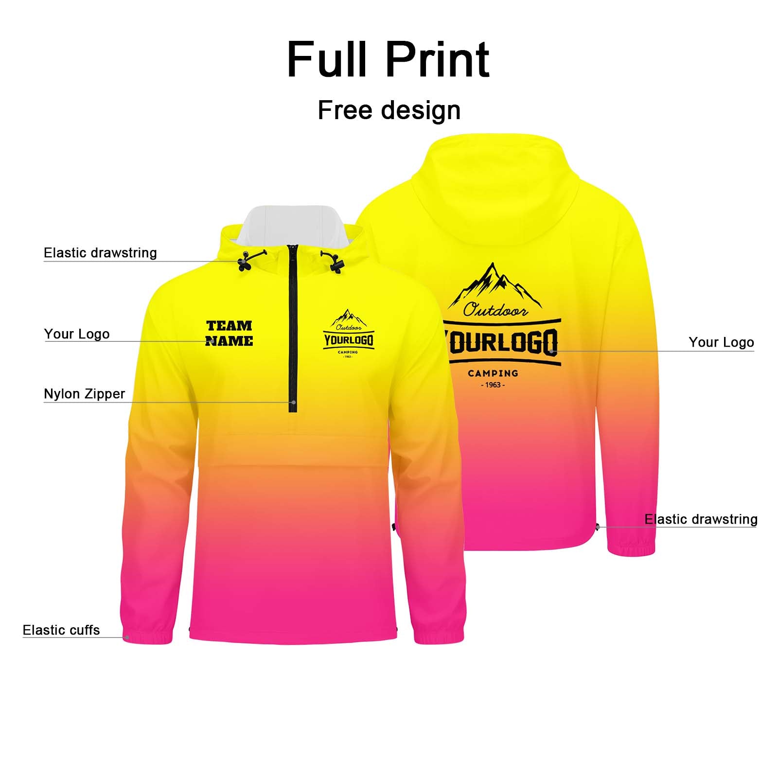 Anpassbare Gelb Rosa Winddichte Softshell Kapuzenjacke - Vollverschluss, Logo- & Text-Druck