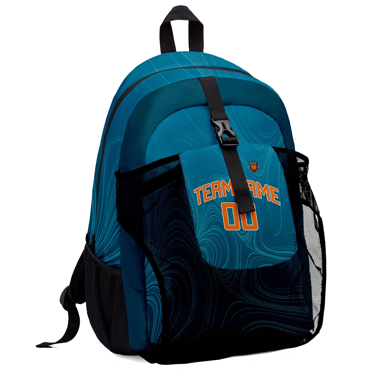 Anpassen Teal Orange Sport Rucksäcke Mit Personalisiert Namen, Zahlen und Logos