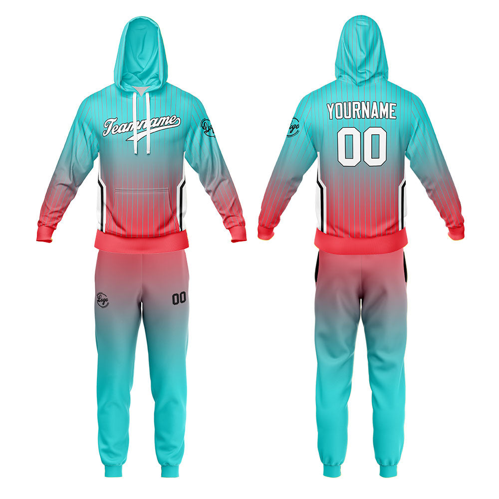 Benutzerdefiniert Azure Tarnung Sport Jersey Satz Trainingsanzug Zur Seite fahren Kapuzenpullover Oberteile und Hose Satz Königlich