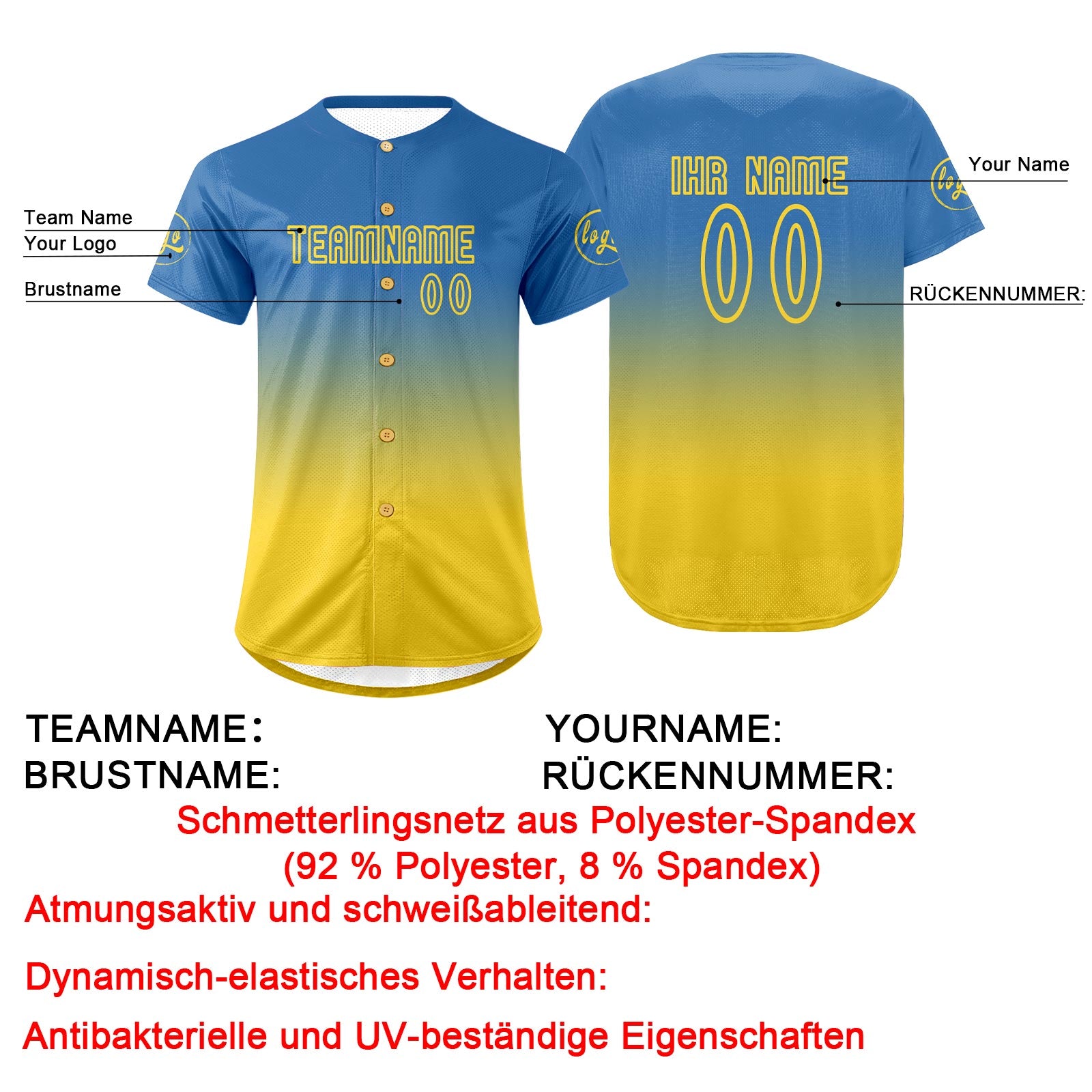 Benutzerdefiniert Blau Gelb Personalisierter Baseball Jersey mit Farbverlauf Team Uniform mit Namen und Nummer