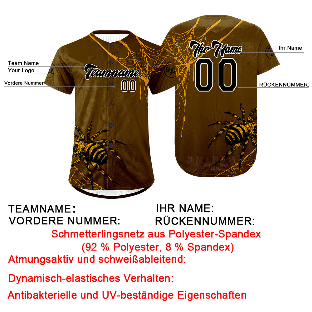 Benutzerdefiniert Braun Gelb Personalisierter Baseball Jersey mit Farbverlauf Team Uniform mit Namen und Nummer