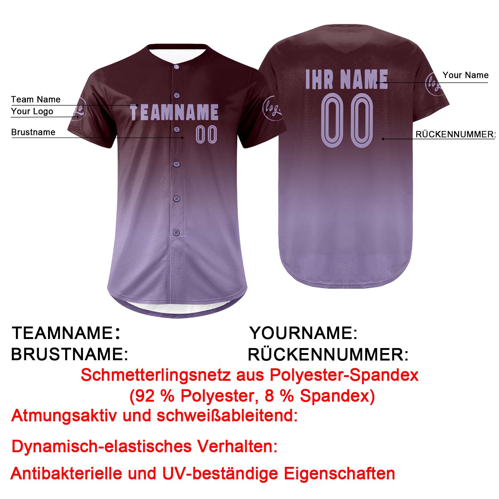 Benutzerdefiniert Braun Lila Personalisierter Baseball Jersey mit Farbverlauf Team Uniform mit Namen und Nummer