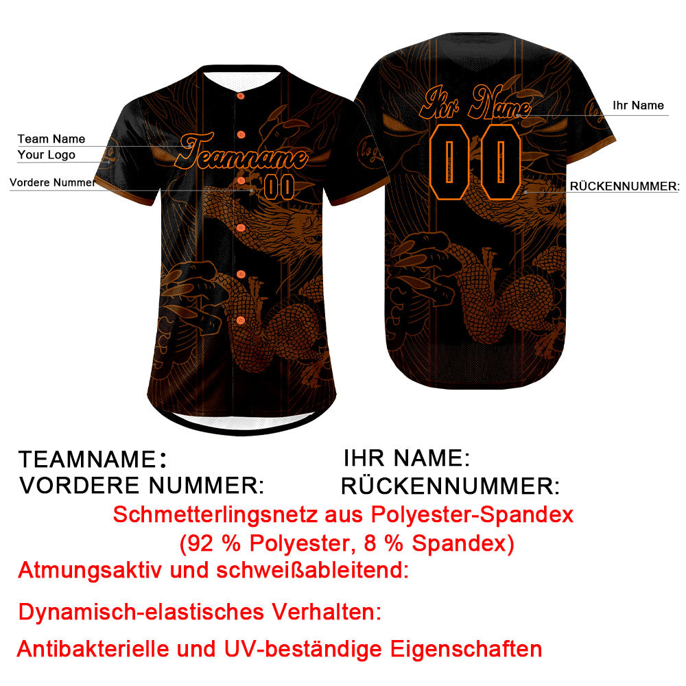 Benutzerdefiniert Braun Schwarz Personalisierter Baseball Jersey mit Farbverlauf Team Uniform mit Namen und Nummer