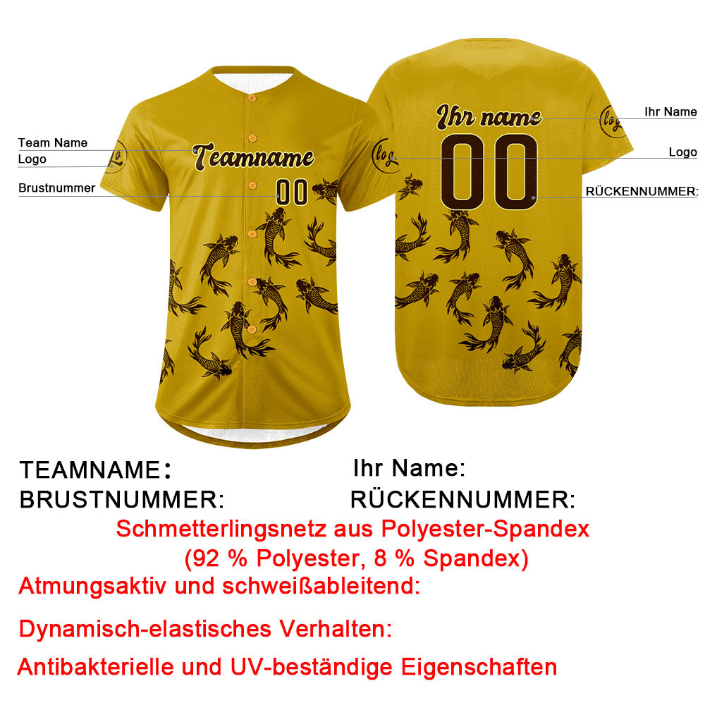 Benutzerdefiniert Gelb Braun Personalisierter Baseball Jersey mit Farbverlauf Team Uniform mit Namen und Nummer