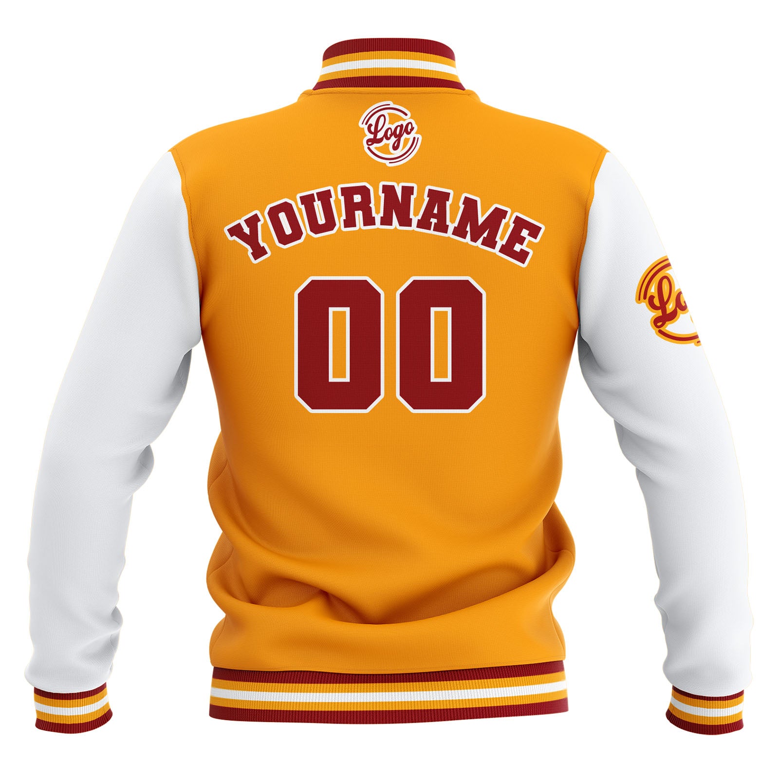 Benutzerdefiniert Gelb Rot Weiß Wasserdichte Varsity Jacken Personalisiert genäht Name Nummer Logo zu Letterman Jacken