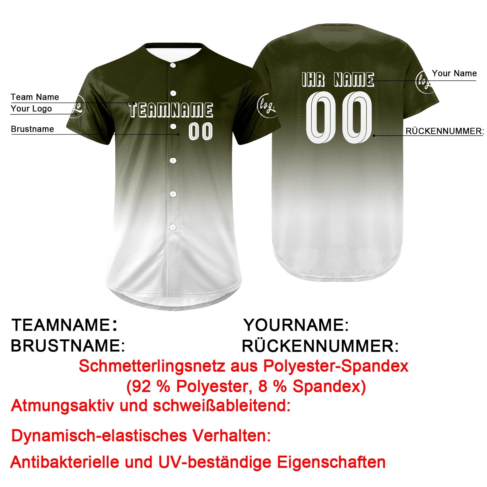 Benutzerdefiniert Grün Weiß Personalisierter Baseball Jersey mit Farbverlauf Team Uniform mit Namen und Nummer