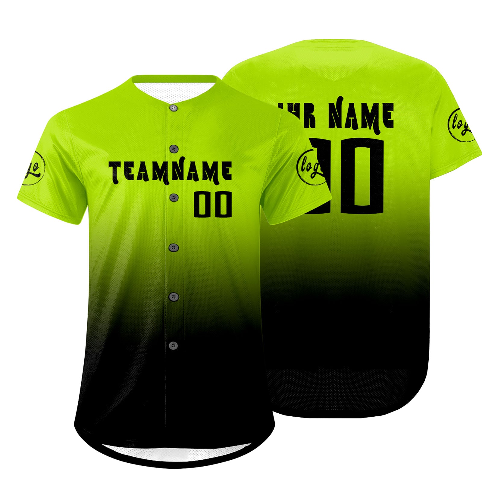 Benutzerdefiniert Hell Cyan Schwarz Personalisierter Baseball Jersey mit Farbverlauf Team Uniform mit Namen und Nummer