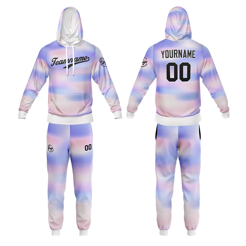Benutzerdefiniert Licht Lila Tarnung Sport Jersey Satz Trainingsanzug Zur Seite fahren Kapuzenpullover Oberteile und Hose Satz Königlich
