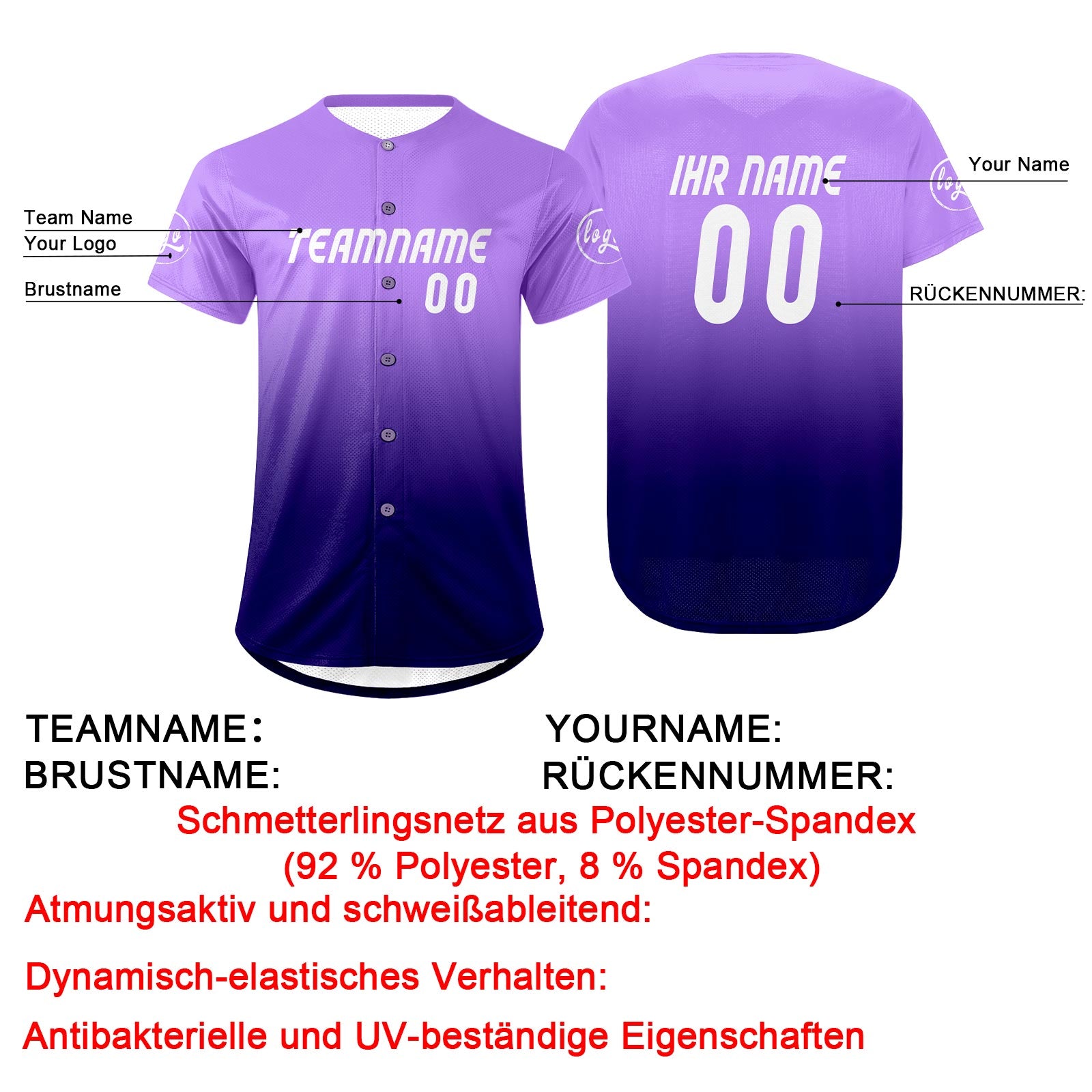 Benutzerdefiniert Lila Dunkellila Personalisierter Baseball Jersey mit Farbverlauf Team Uniform mit Namen und Nummer