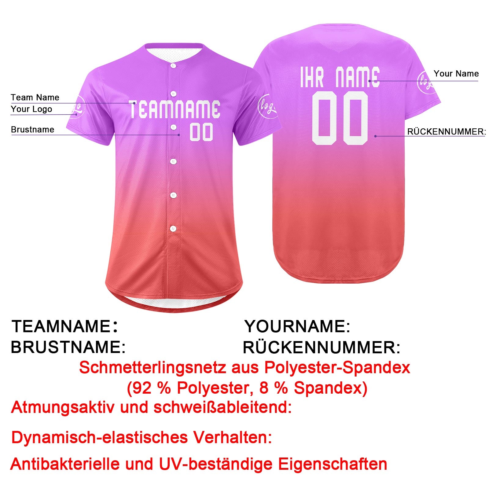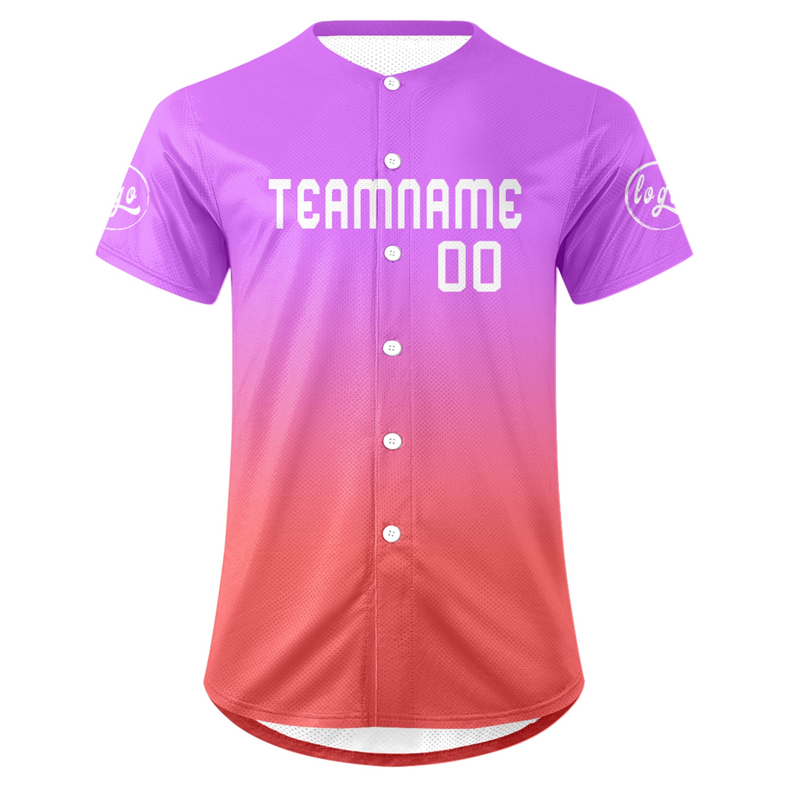 Benutzerdefiniert Lila Rosa Personalisierter Baseball Jersey mit Farbverlauf Team Uniform mit Namen und Nummer
