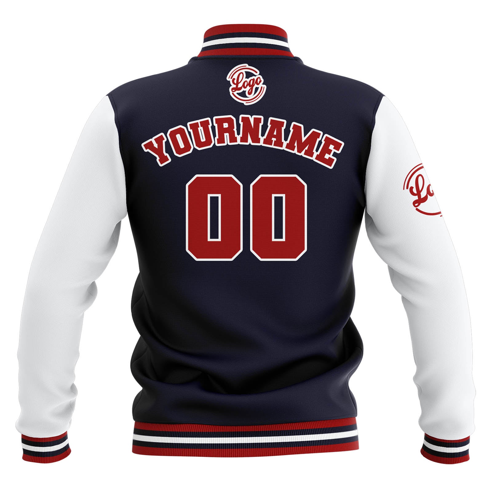 Benutzerdefiniert Marine Weiß Rot Wasserdichte Varsity Jacken Personalisiert genäht Name Nummer Logo zu Letterman Jacken