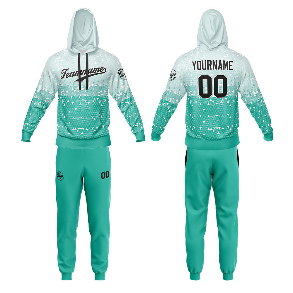 Benutzerdefiniert Minzgrün Tarnung Sport Jersey Satz Trainingsanzug Zur Seite fahren Kapuzenpullover Oberteile und Hose Satz Königlich