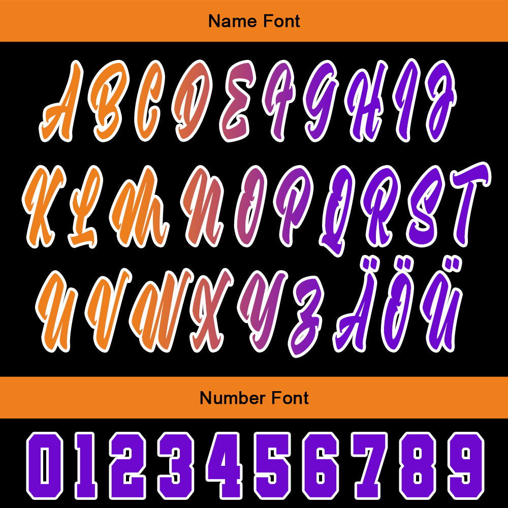 Benutzerdefiniert Orange Lila Personalisierter Baseball Jersey mit Farbverlauf Team Uniform mit Namen und Nummer