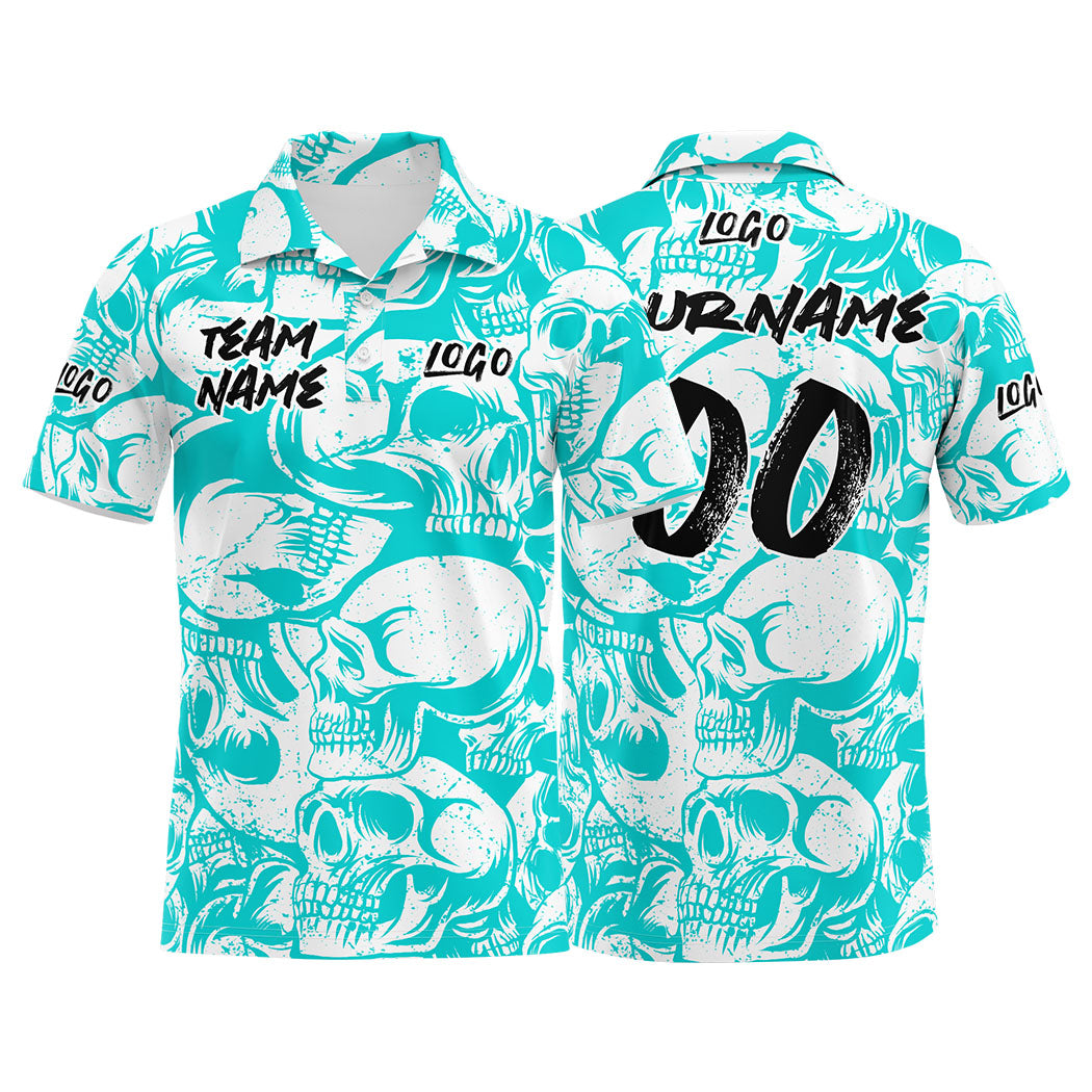 Benutzerdefiniert Polo Hemden und Personalisieren T-Shirts für Männer, Frauen und Kinder Hinzufügen Ihr Einzigartig Logo und Text Hellblau&Weiß