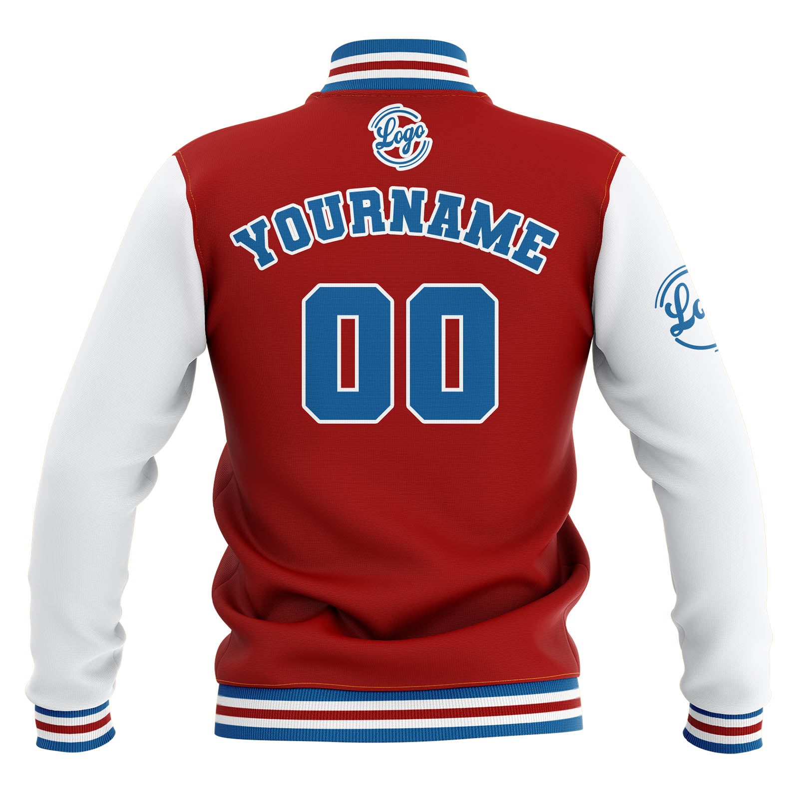 Benutzerdefiniert Rot Weiß Blau Wasserdichte Varsity Jacken Personalisiert genäht Name Nummer Logo zu Letterman Jacken