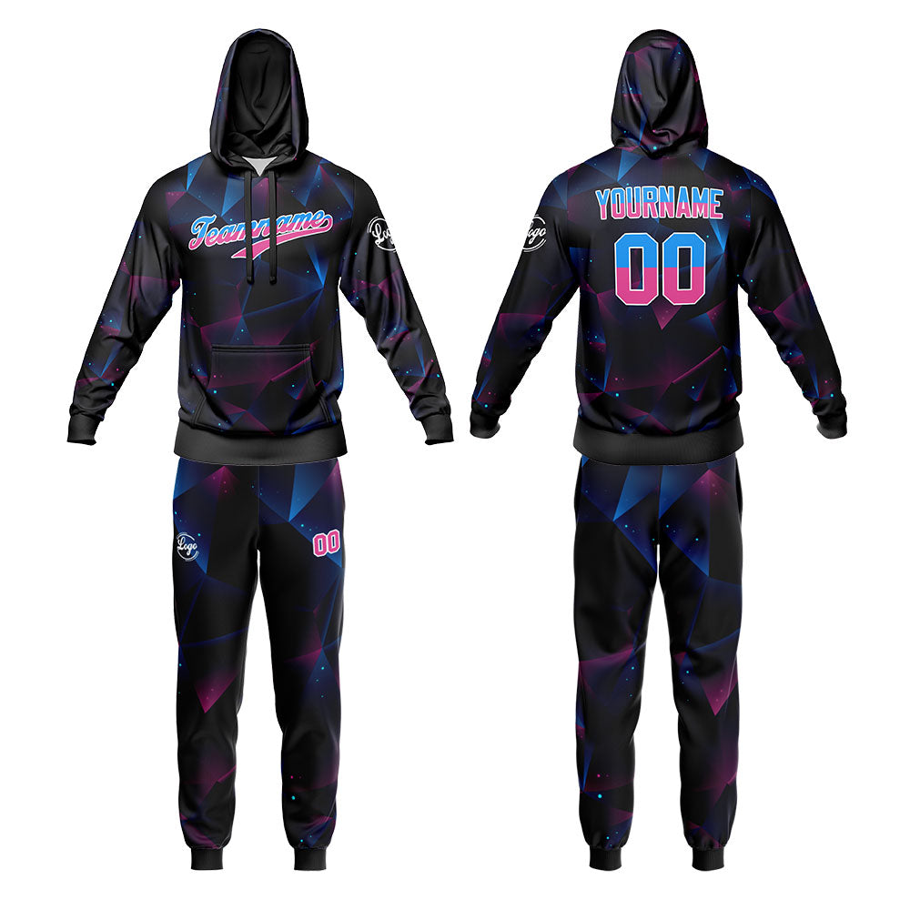 Benutzerdefiniert Schwarz Blau Tarnung Sport Jersey Satz Trainingsanzug Zur Seite fahren Kapuzenpullover Oberteile und Hose Satz Königlich