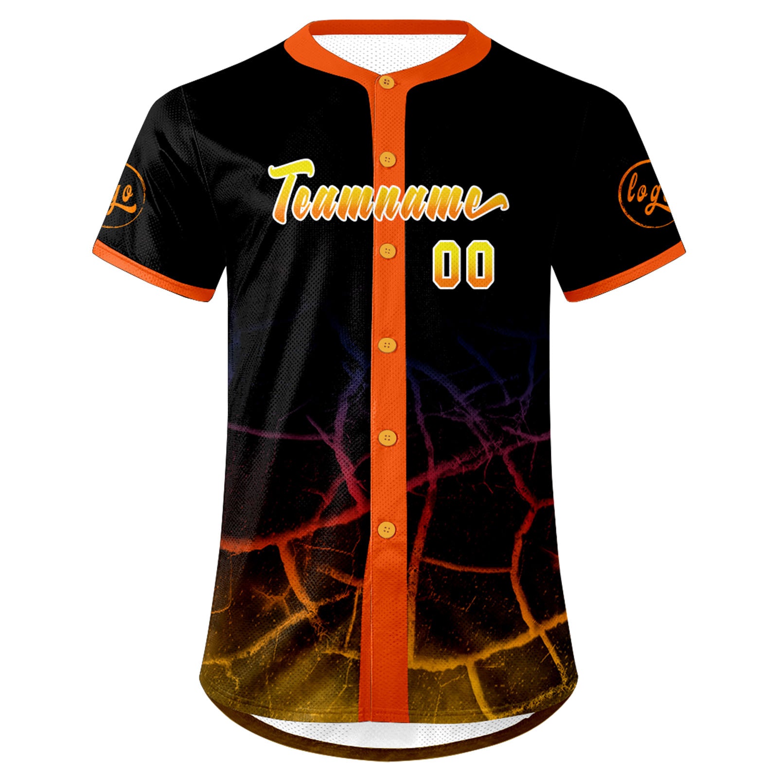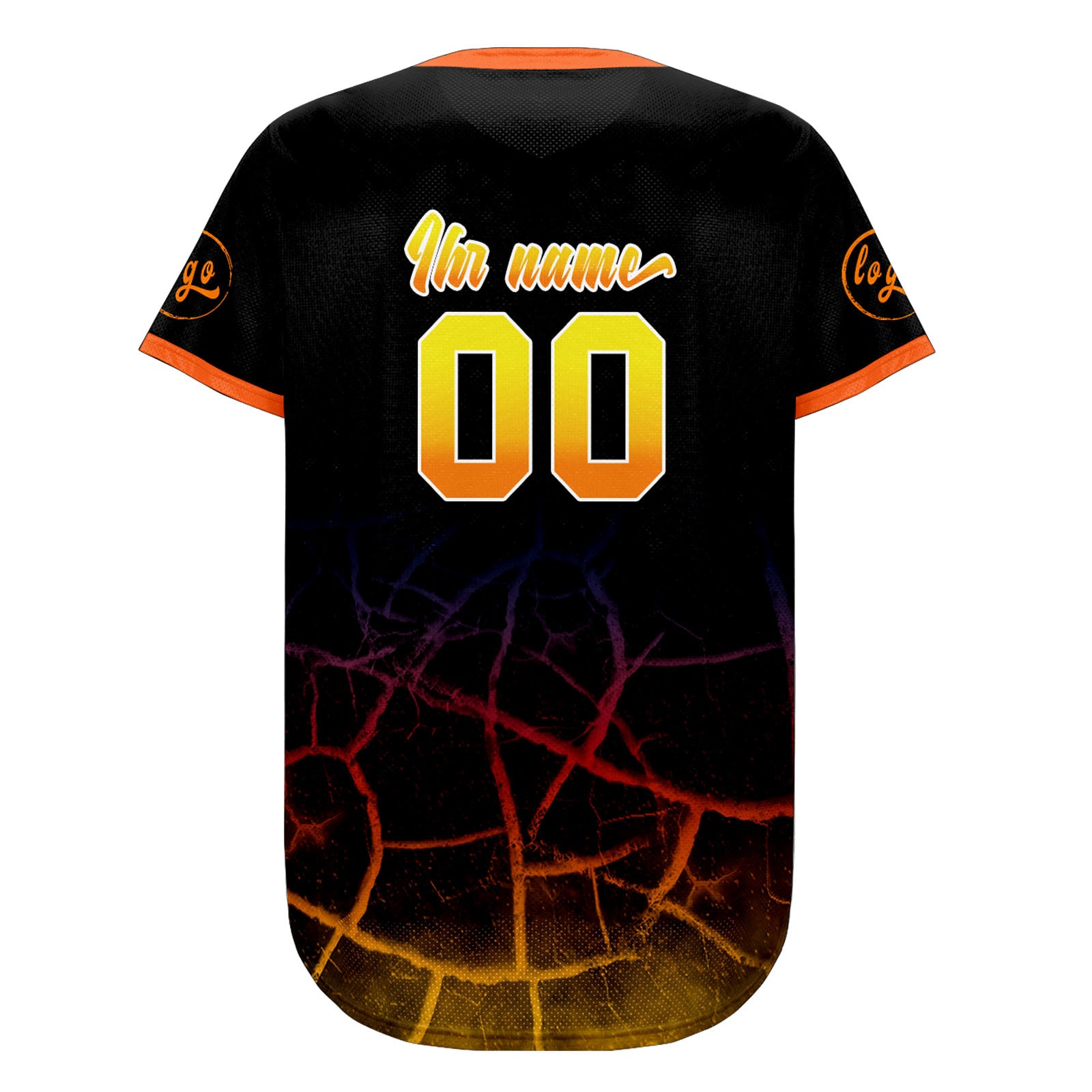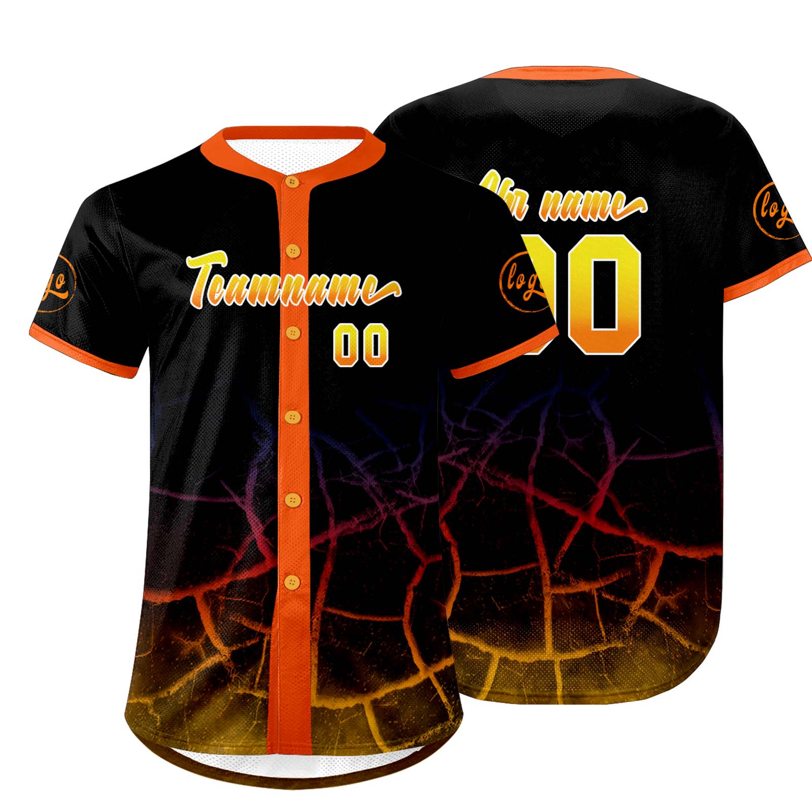 Benutzerdefiniert Schwarz Orange Gelb Personalisierter Baseball Jersey mit Farbverlauf Team Uniform mit Namen und Nummer