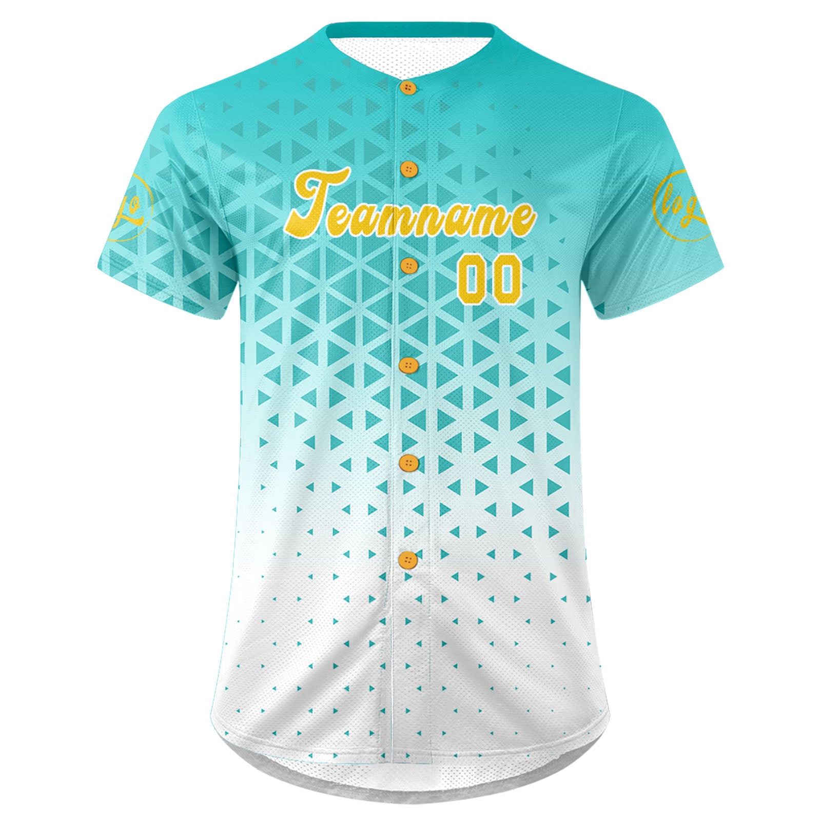 Benutzerdefiniert Seen Blau Weiß Personalisierter Baseball Jersey mit Farbverlauf Team Uniform mit Namen und Nummer