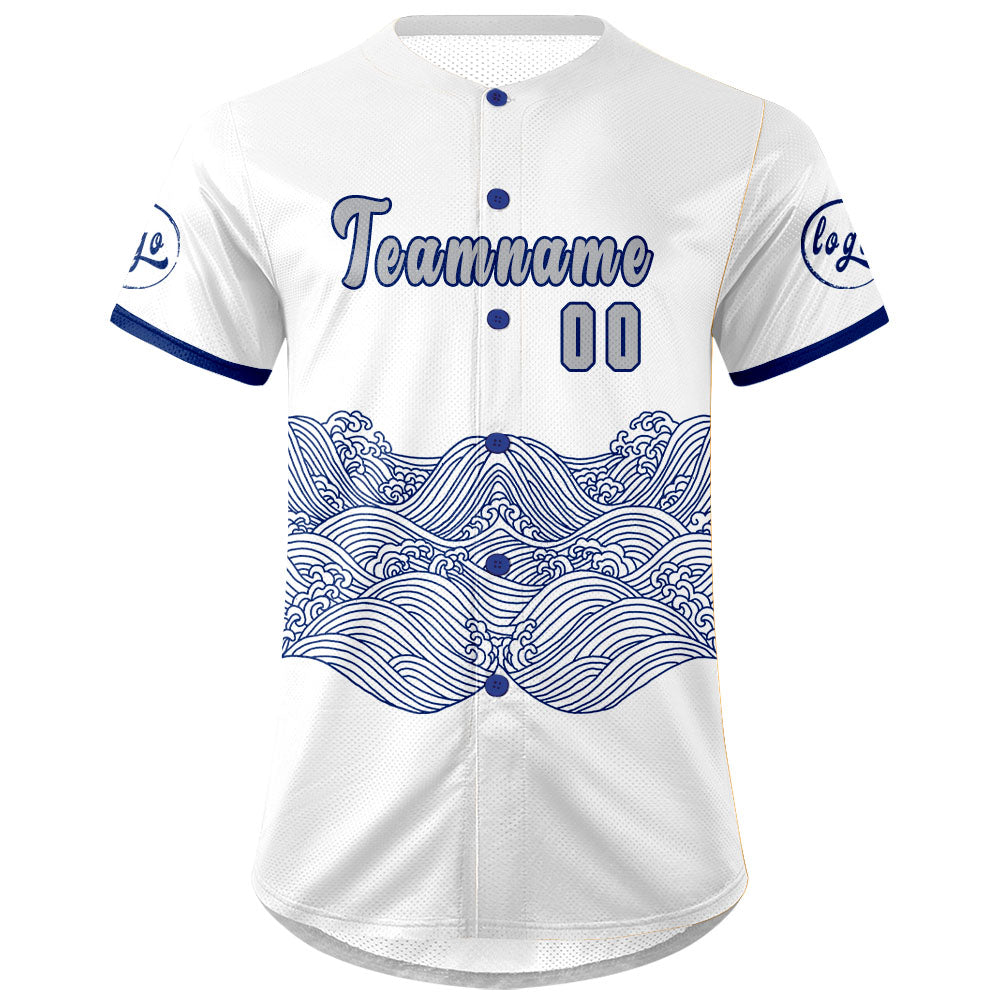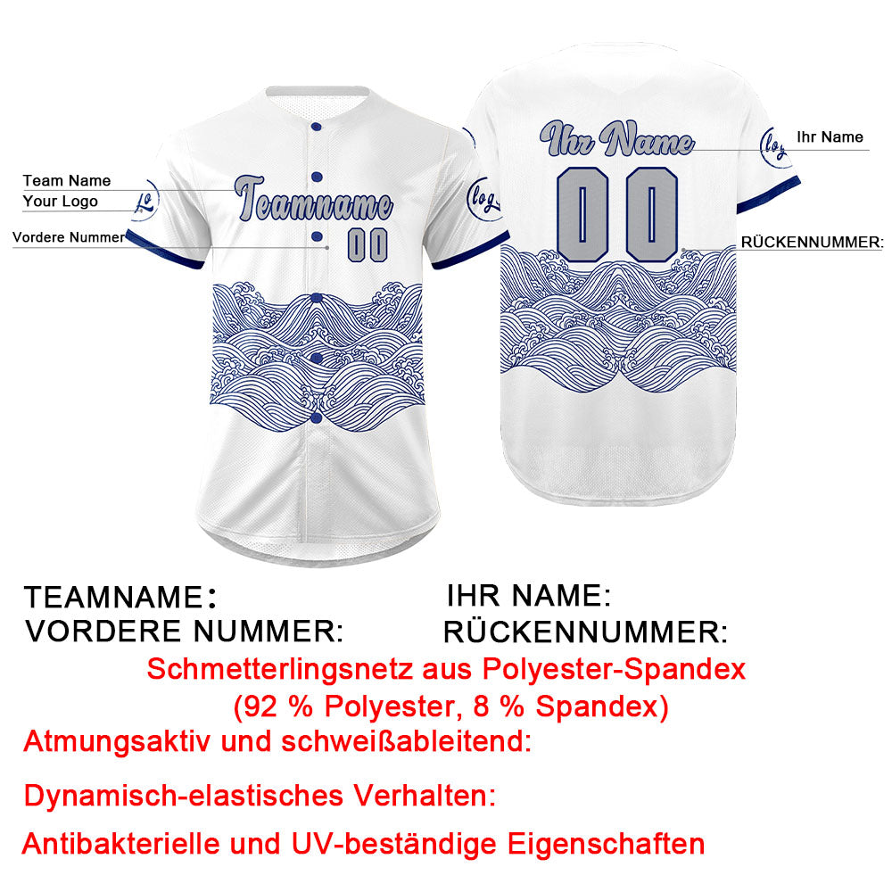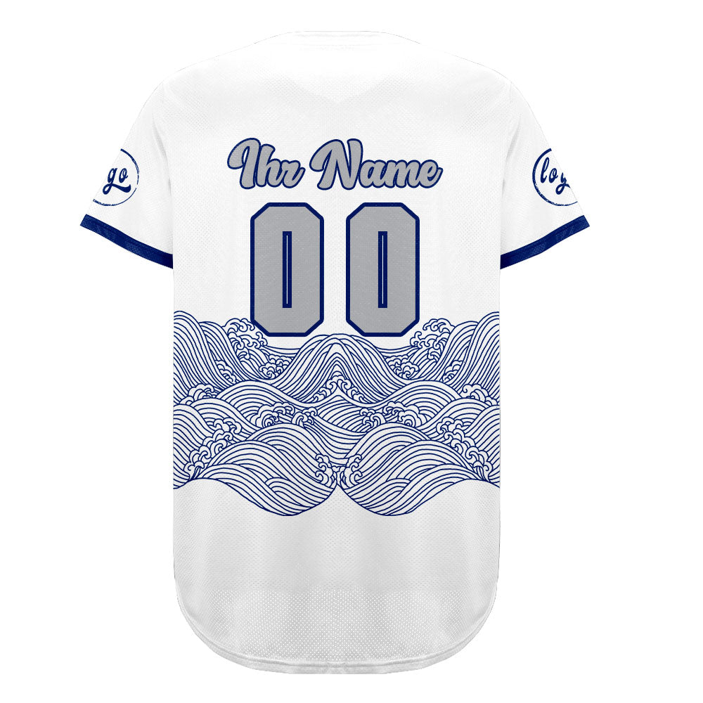Benutzerdefiniert Weiß Blau Personalisierter Baseball Jersey mit Farbverlauf Team Uniform mit Namen und Nummer