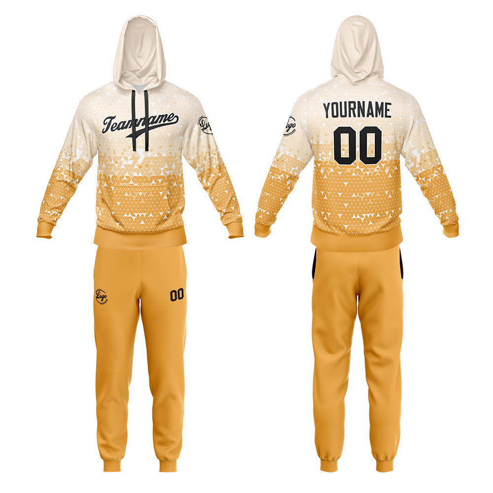 Benutzerdefiniert Weiß Gelb Tarnung Sport Jersey Satz Trainingsanzug Zur Seite fahren Kapuzenpullover Oberteile und Hose Satz Königlich