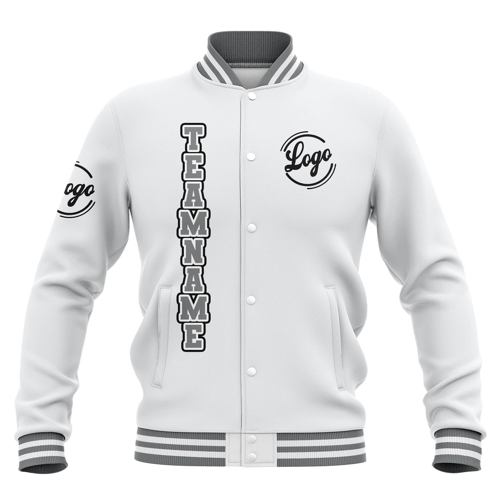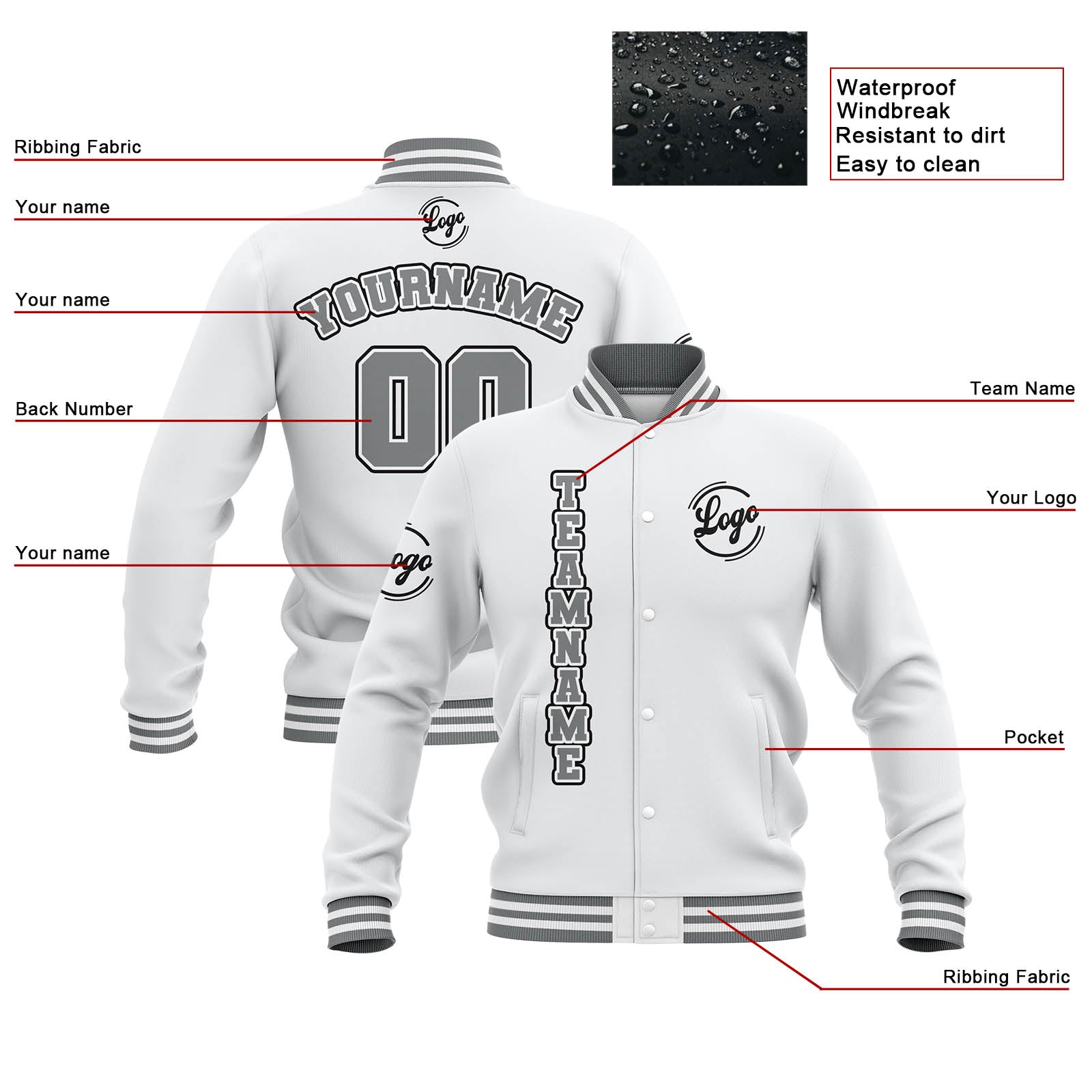 Benutzerdefiniert  Weiß Grau Wasserdichte Varsity Jacken Personalisiert genäht Name Nummer Logo zu Letterman Jacken