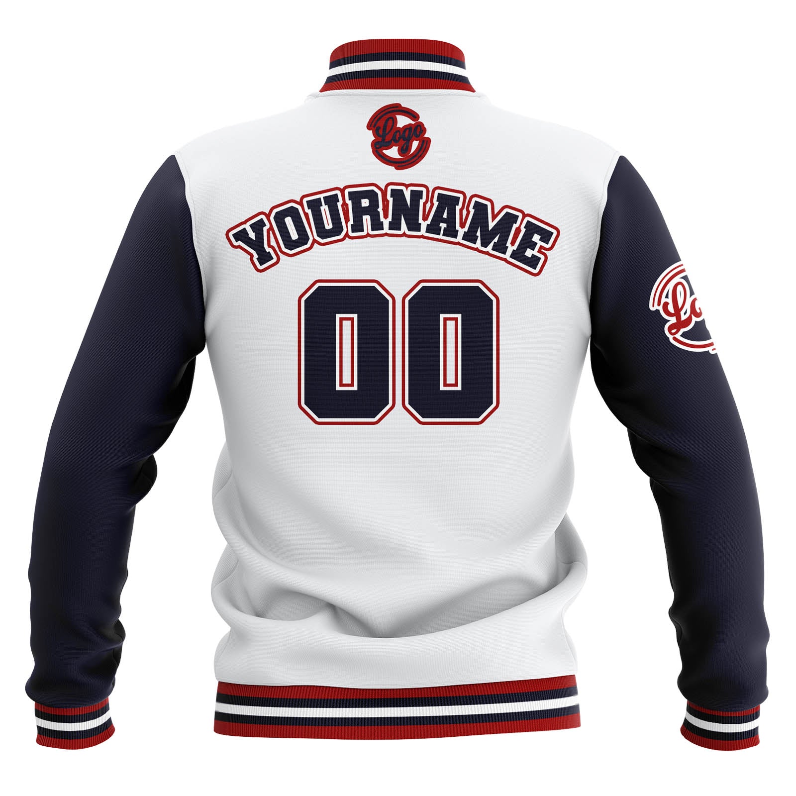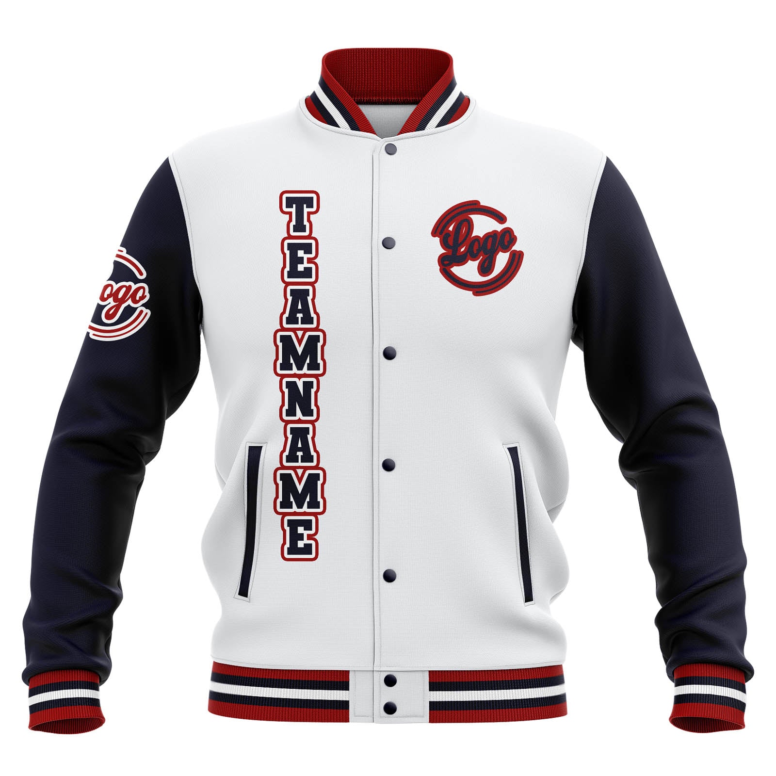 Benutzerdefiniert  Weiß Marine Rot Wasserdichte Varsity Jacken Personalisiert genäht Name Nummer Logo zu Letterman Jacken