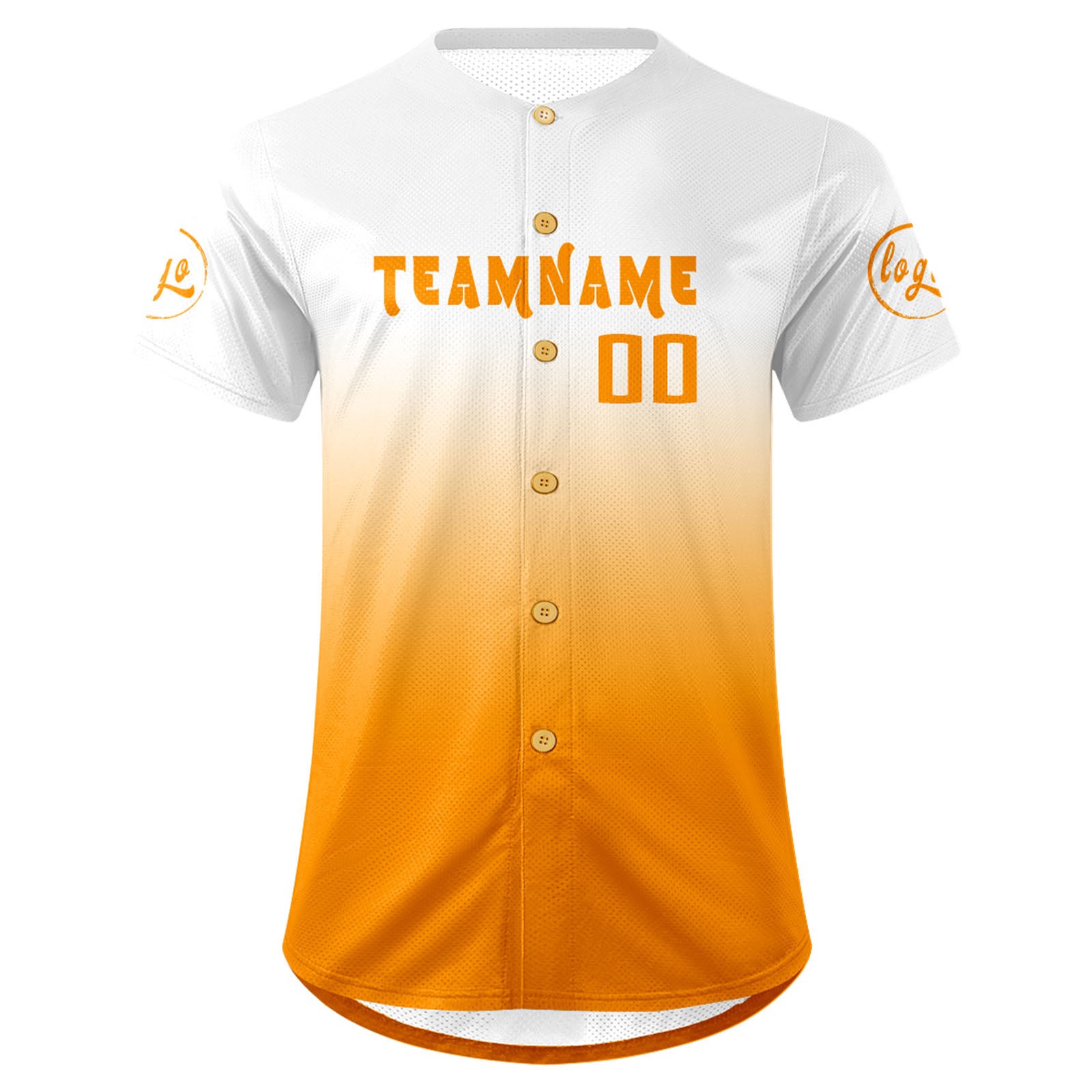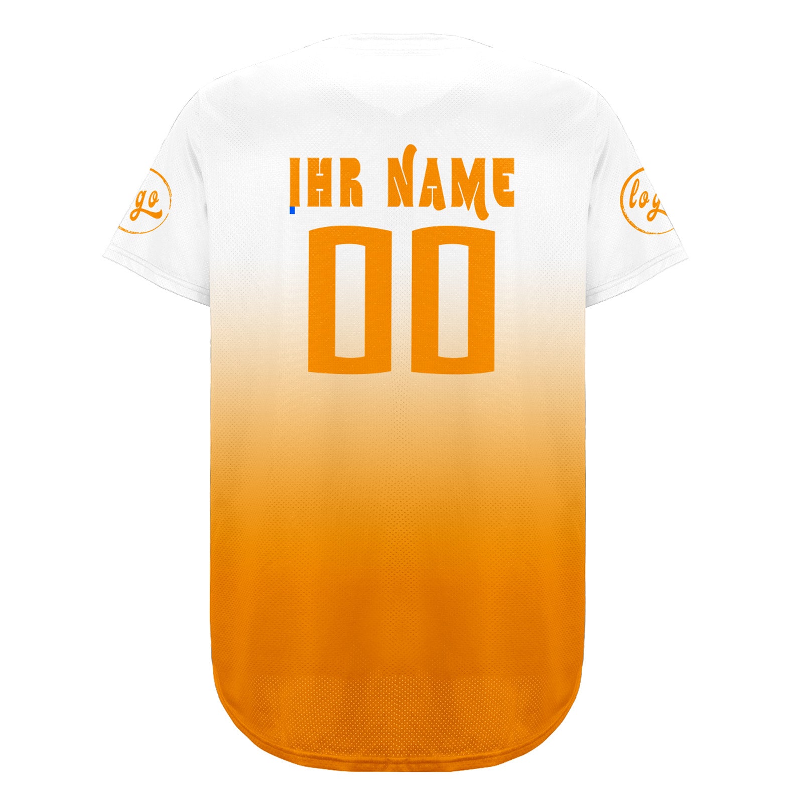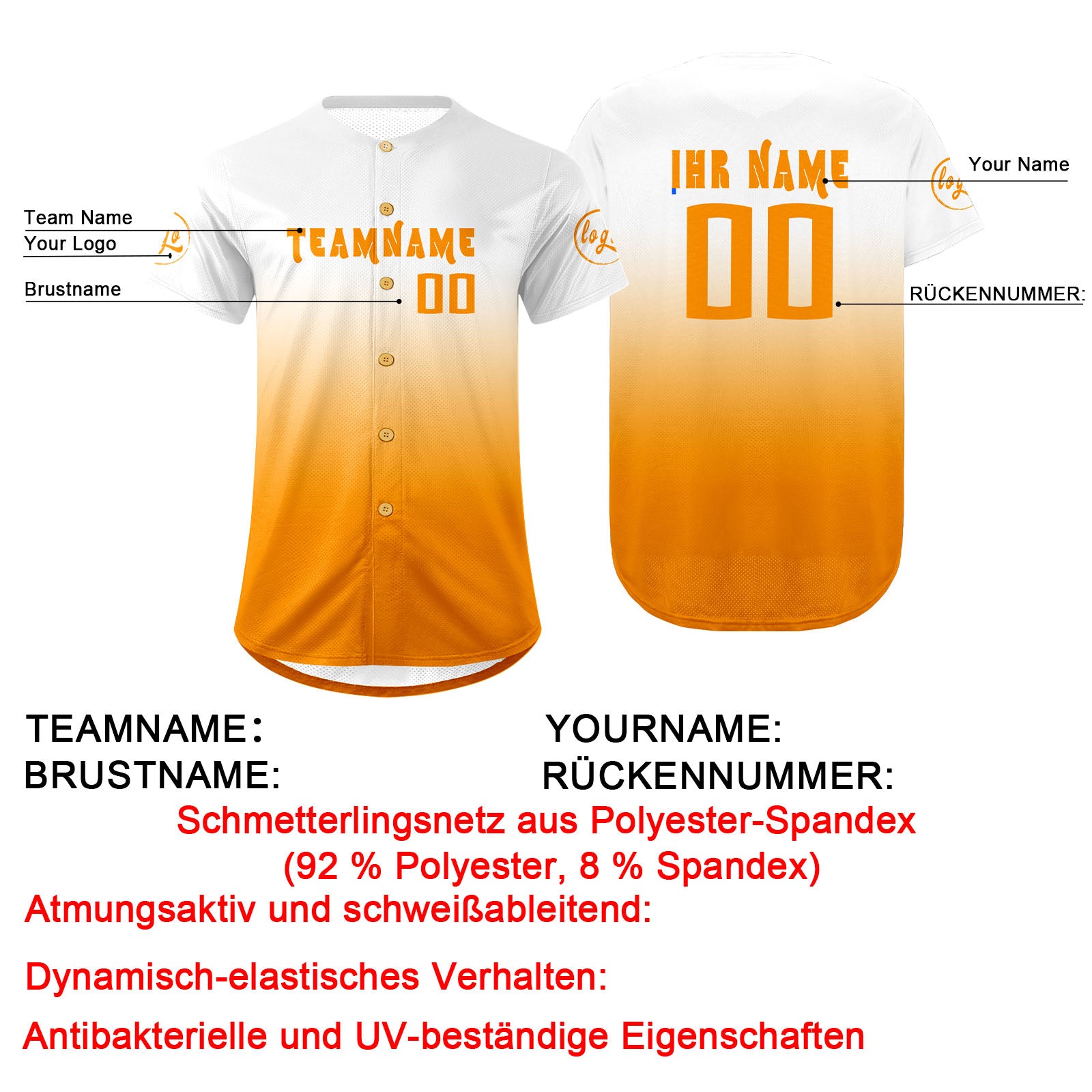 Benutzerdefiniert Weiß Orange Personalisierter Baseball Jersey mit Farbverlauf Team Uniform mit Namen und Nummer