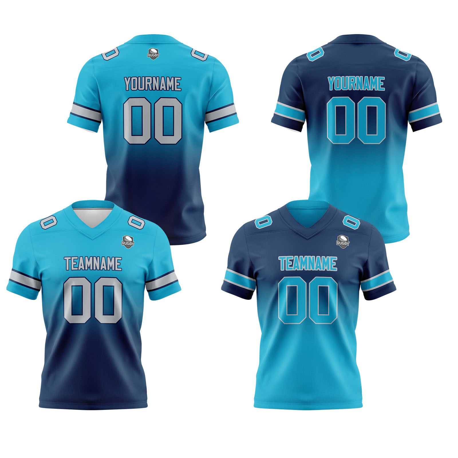 Benutzerdefinierte Aqua Dunkelblau Reversibel Genäht Fußball Trikot Personalisierte Gradient Fußball Shirts für Männer gedruckt Team Name Nummer Logo