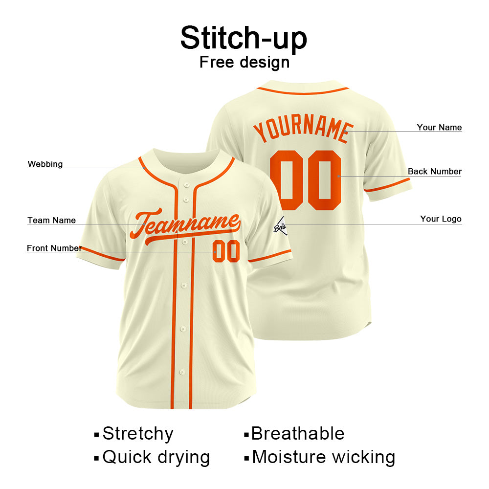 Benutzerdefinierte Authentisch Baseball-Trikot Creme-Orange