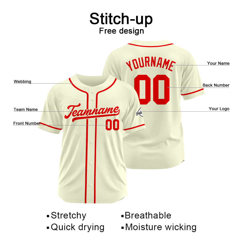 Benutzerdefinierte Authentisch Baseball-Trikot Creme-Rot