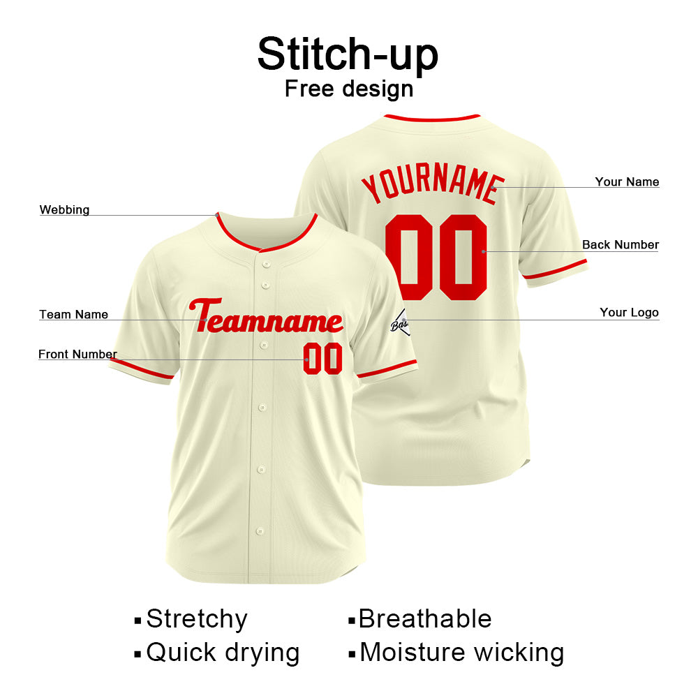 Benutzerdefinierte Authentisch Baseball-Trikot Creme-Rot