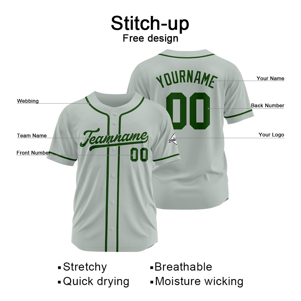 Benutzerdefinierte Authentisch Baseball-Trikot Grau-Dunkelgrün