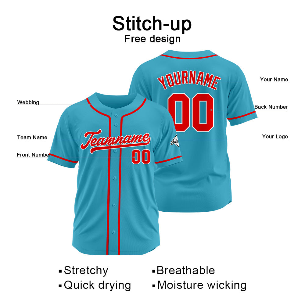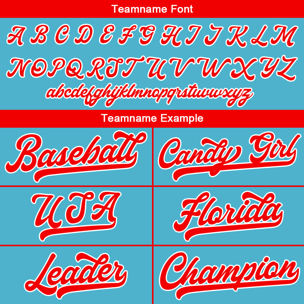 Benutzerdefinierte Authentisch Baseball-Trikot Hellblau-Rot