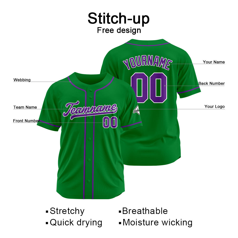 Benutzerdefinierte Authentisch Baseball-Trikot Kelly Grün- Lila