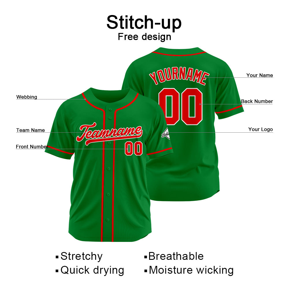 Benutzerdefinierte Authentisch Baseball-Trikot Kelly Grün-Rot