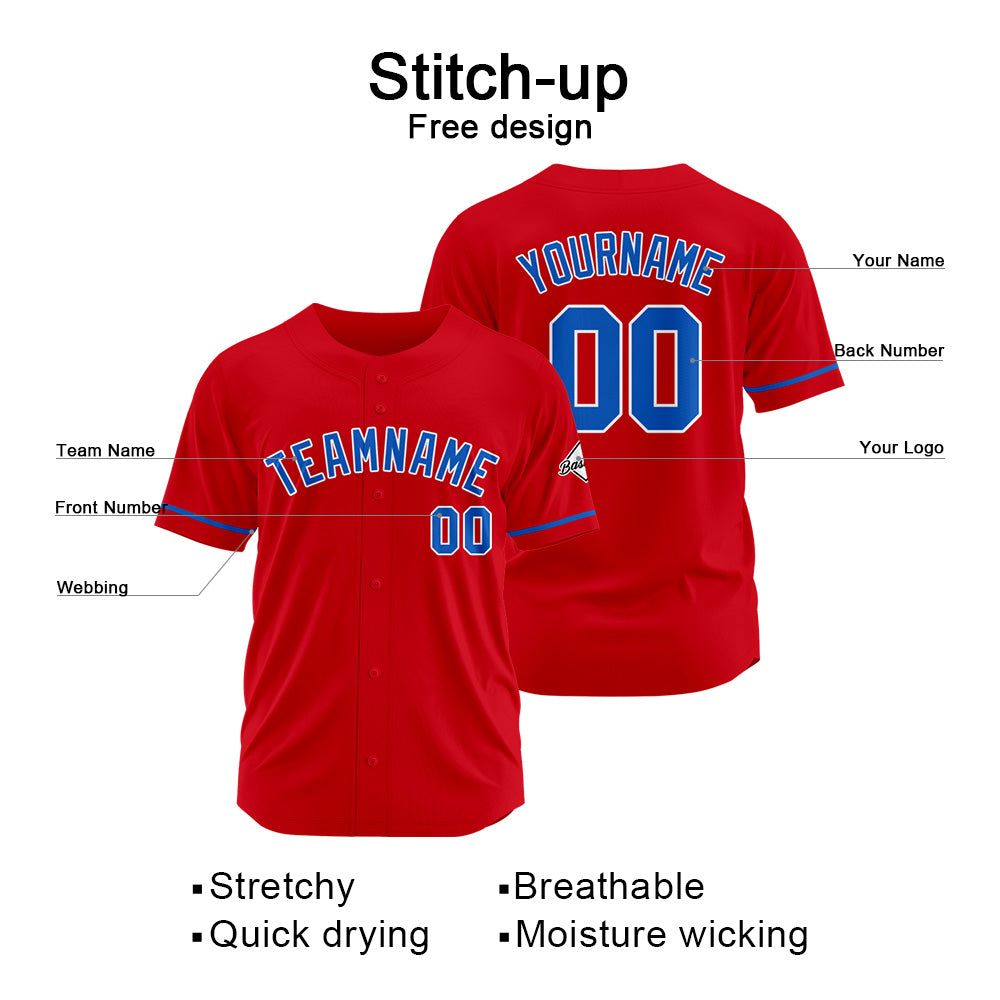 Benutzerdefinierte Authentisch Baseball-Trikot Rot-königlich
