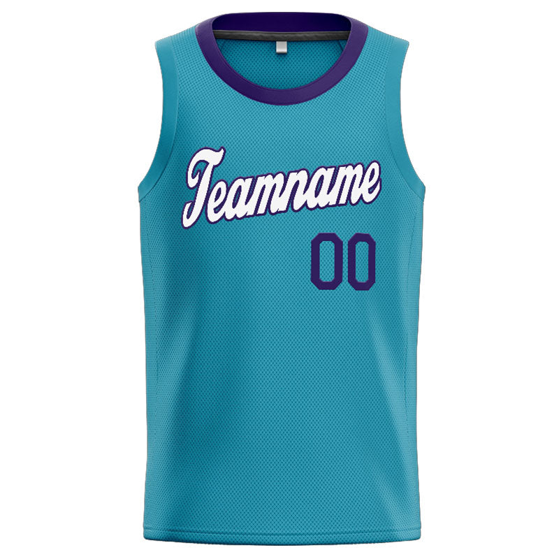 Benutzerdefinierte Authentisch Basketball Trikot Blaugrün-Violett-Weiß
