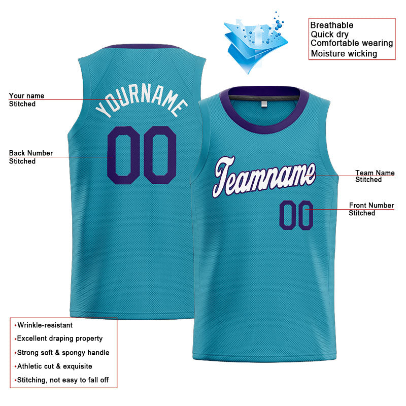 Benutzerdefinierte Authentisch  Basketball Trikot Blaugrün-Violett-Weiß