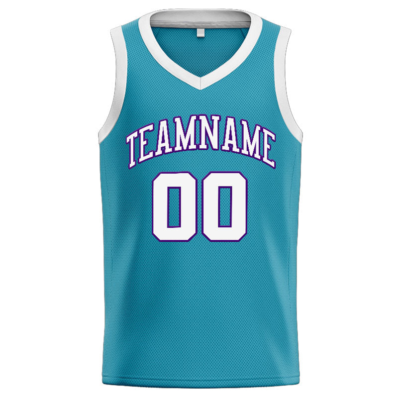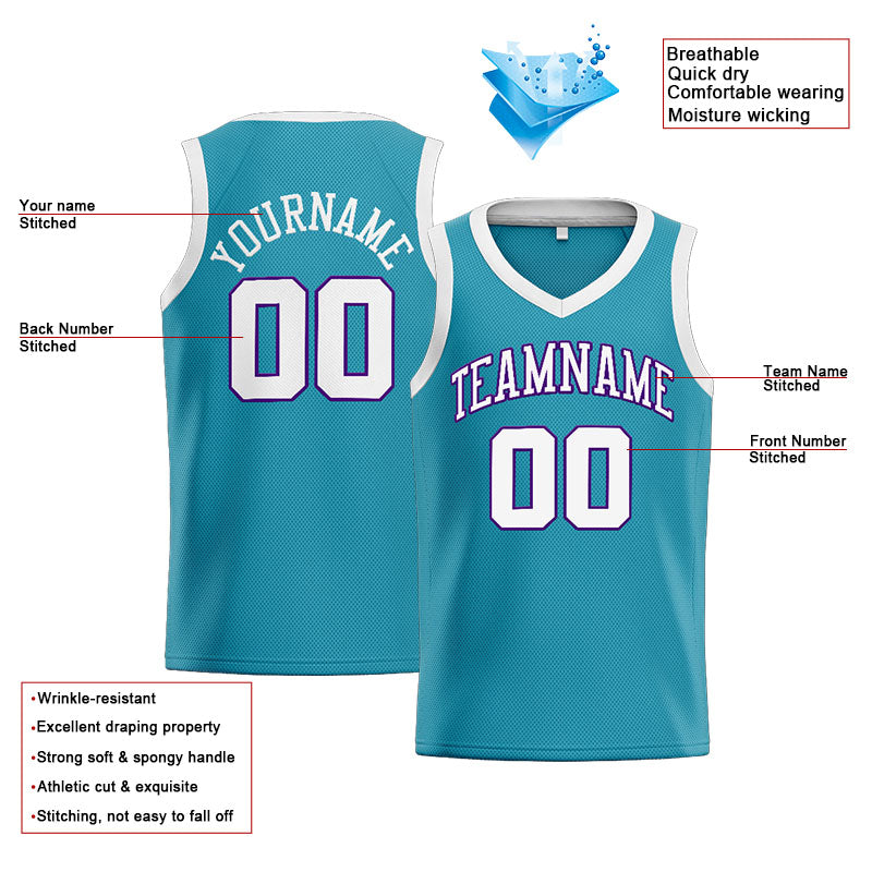 Benutzerdefinierte Authentisch Basketball Trikot Blaugrün-Weiß-Lila