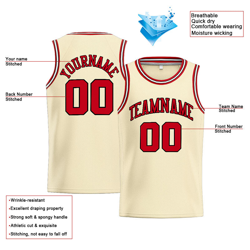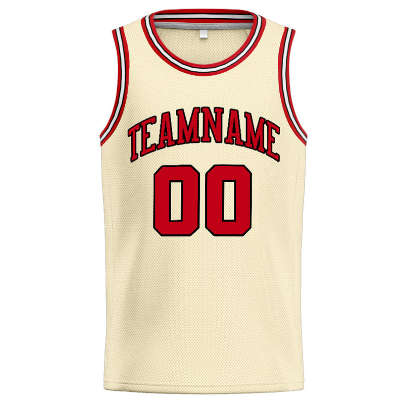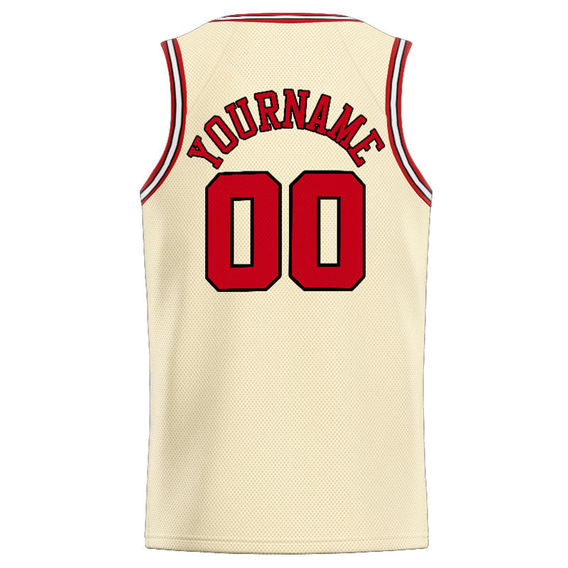 Benutzerdefinierte Authentisch  Basketball Trikot Creme-Rot-Schwarz