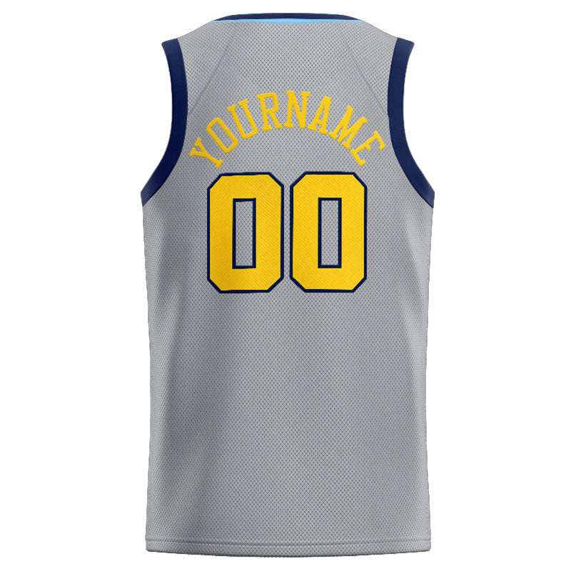 Benutzerdefinierte Authentisch Basketball Trikot Grau-Gelb-Marine