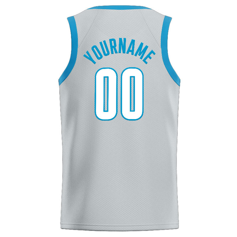 Benutzerdefinierte Authentisch Basketball Trikot Grau-Hellblau