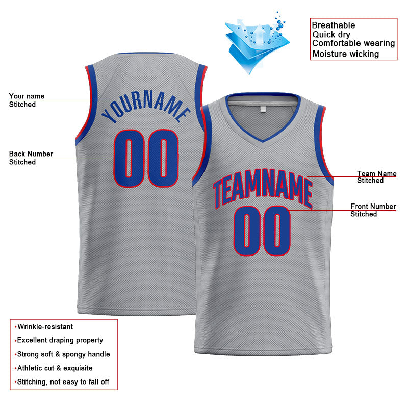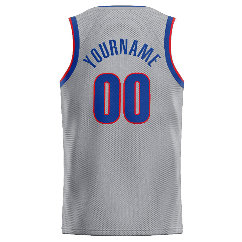 Benutzerdefinierte Authentisch Basketball Trikot Grau-Royal-Rot