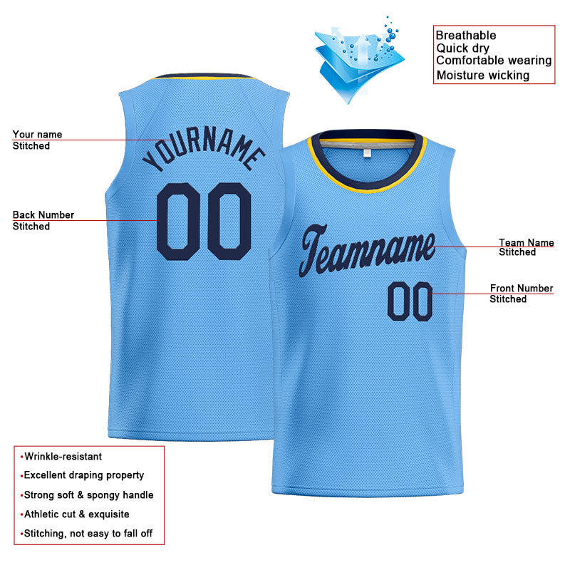 Benutzerdefinierte Authentisch Basketball Trikot Hellblau-Marine-Gelb