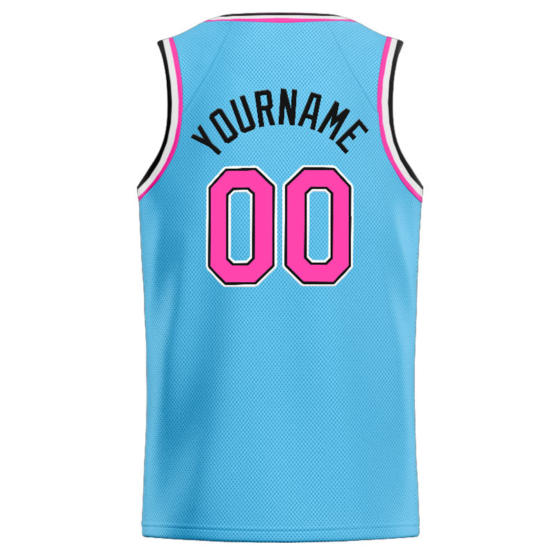 Benutzerdefinierte Authentisch Basketball Trikot Hellblau-Rosa-Weiß-Schwarz