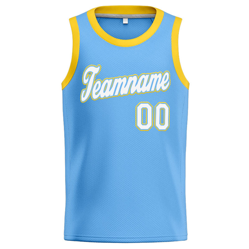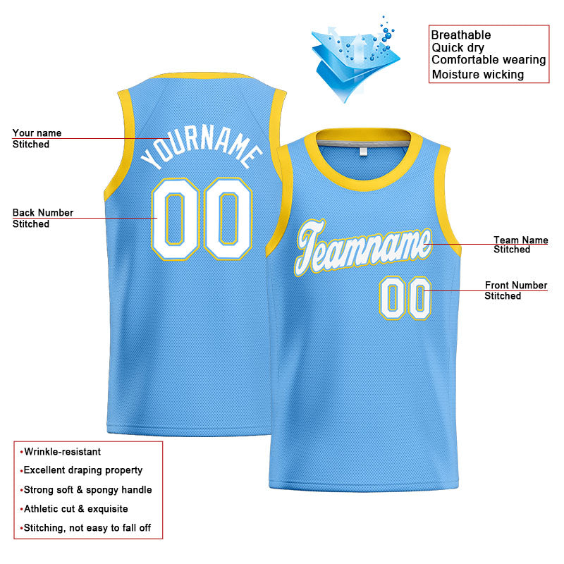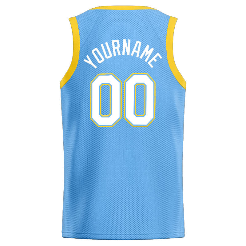 Benutzerdefinierte Authentisch Basketball Trikot Hellblau-Weiß-Gelb