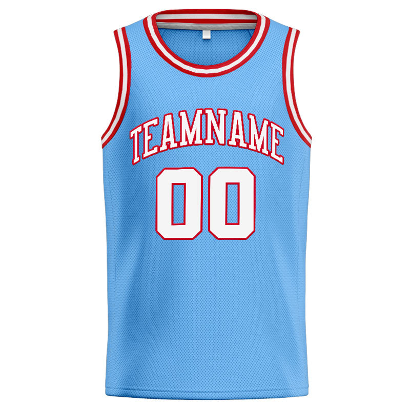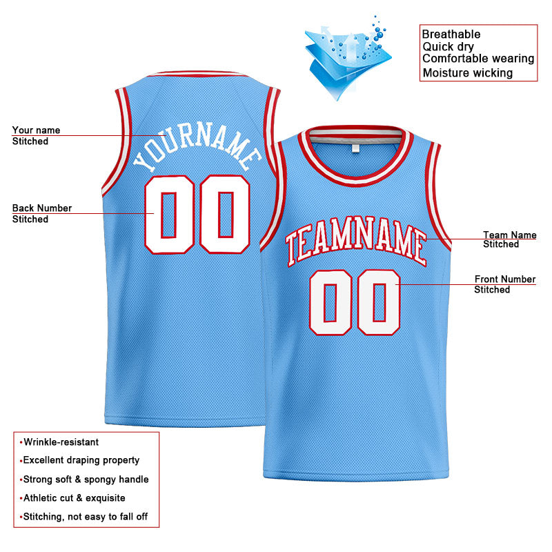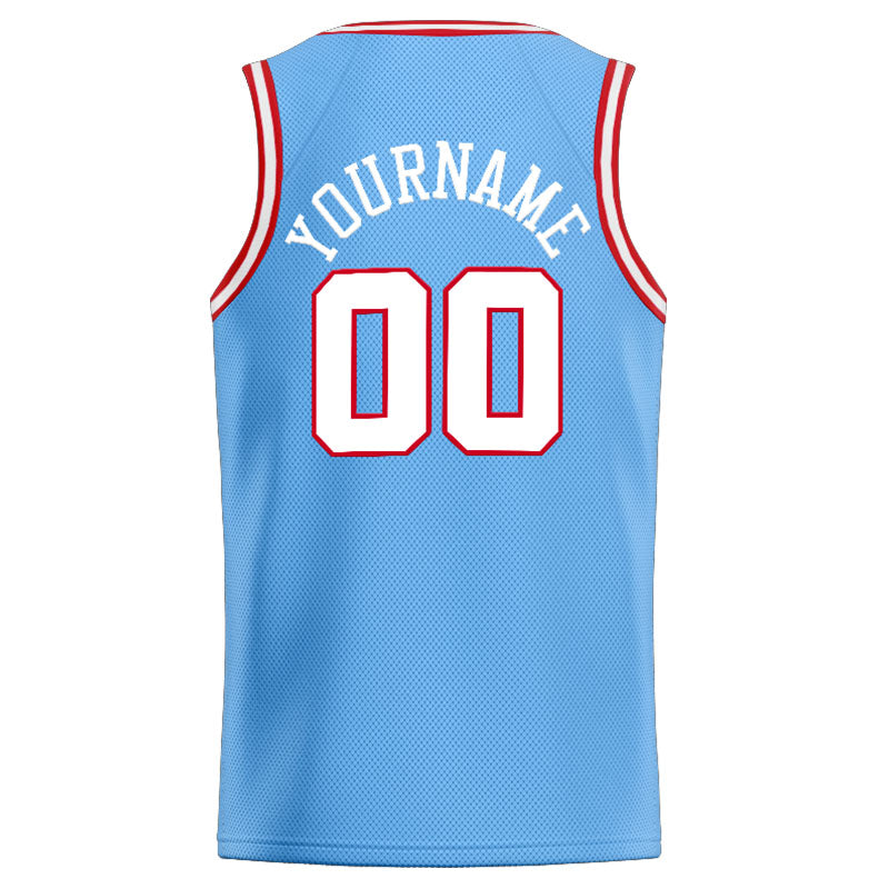 Benutzerdefinierte Authentisch Basketball Trikot Hellblau-Weiß-Rot