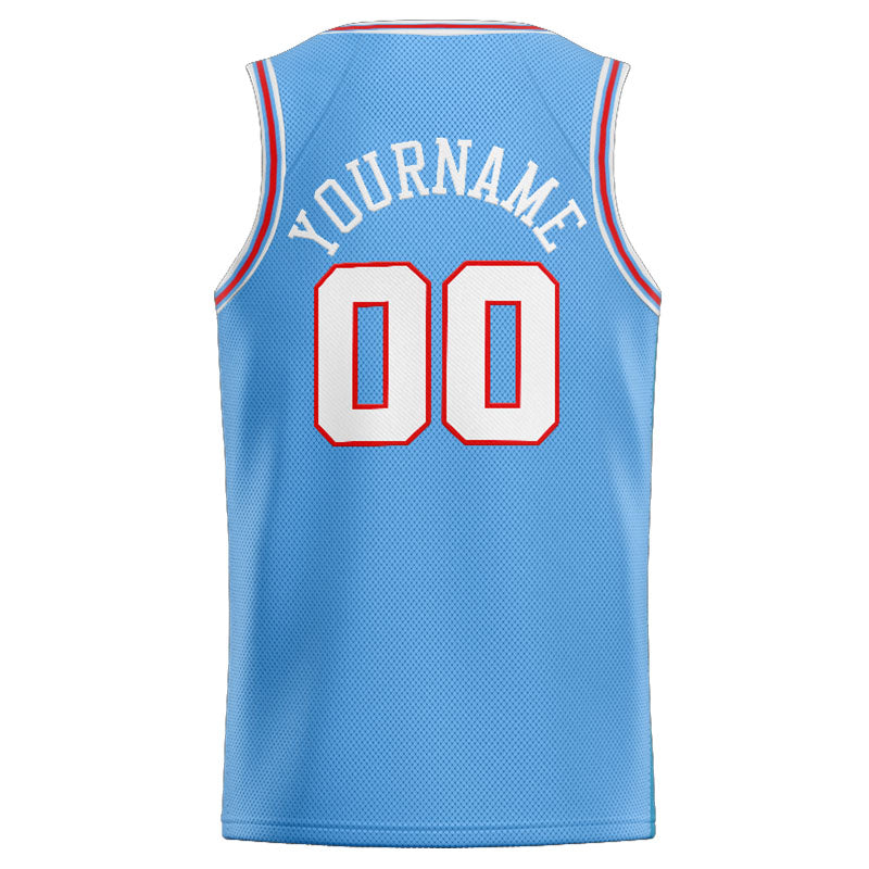 Benutzerdefinierte Authentisch Basketball Trikot Hellblau-Weiß-Rot