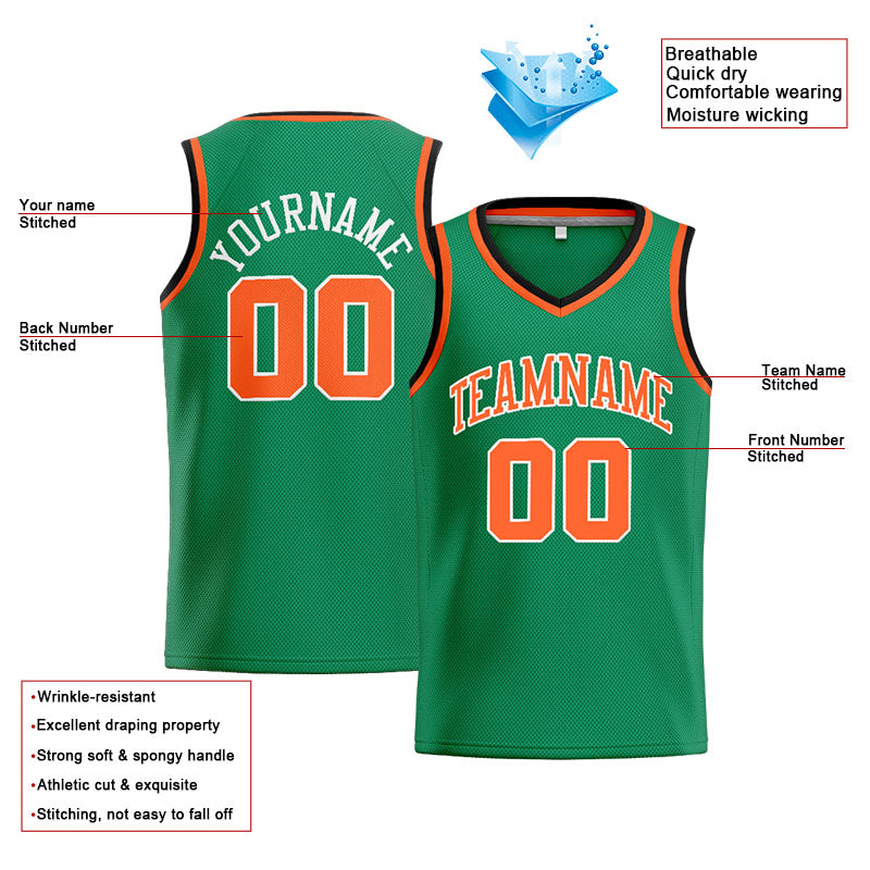 Benutzerdefinierte Authentisch Basketball Trikot Kelly Grün-Orange-Weiß-Schwarz